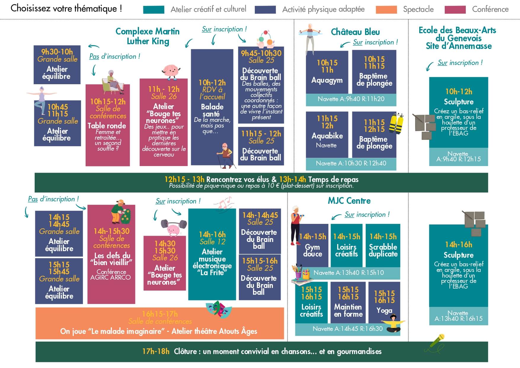 Conférence sur l’avancée en âge et la santé mentale, atelier créatif, activités autour de l’équilibre, yoga, musicothérapie… et bien d’autres découvertes !